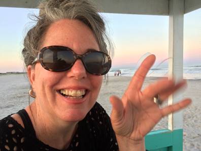 Amy in June 2020 at her favorite place – West Surf Beach in Ocean City, NJ, where we were married in 1998. |